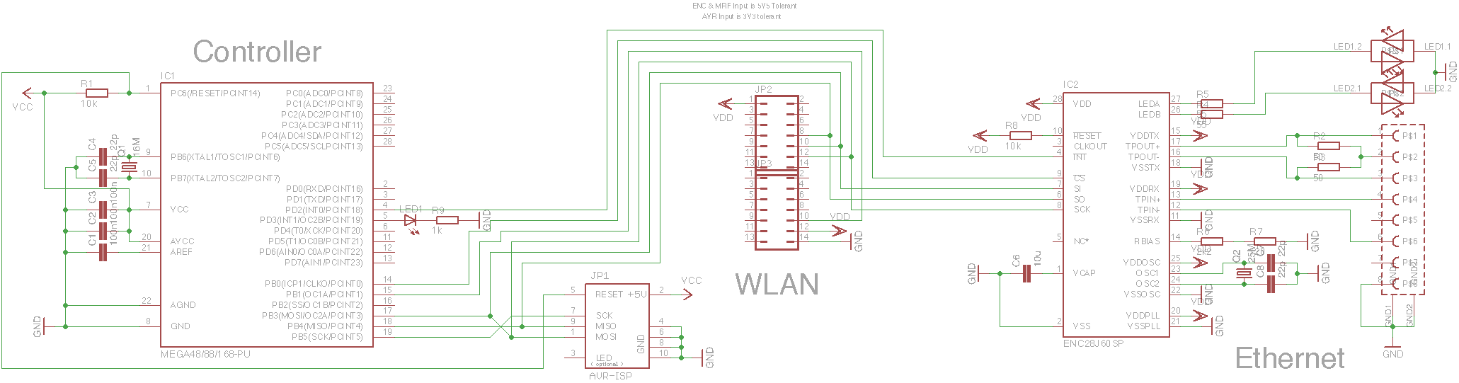 avrNetStack aims to be a very modular Networking Stack running on AVR Microcontrollers and supporting different Network Hardware (ENC28J60, MRF24WB). Select your MCU and hardware driver in the makefile. Compile with "make lib" to create a static library. Compile with "make test" to create a test hex file to use with the hardware found in Hardware/avrNetStack.sch. You need Eagle 6, available for free from cadsoft. In the future, a PCB will be designed that can act as WLAN / LAN Module for your AVR Project, in addition to this software.